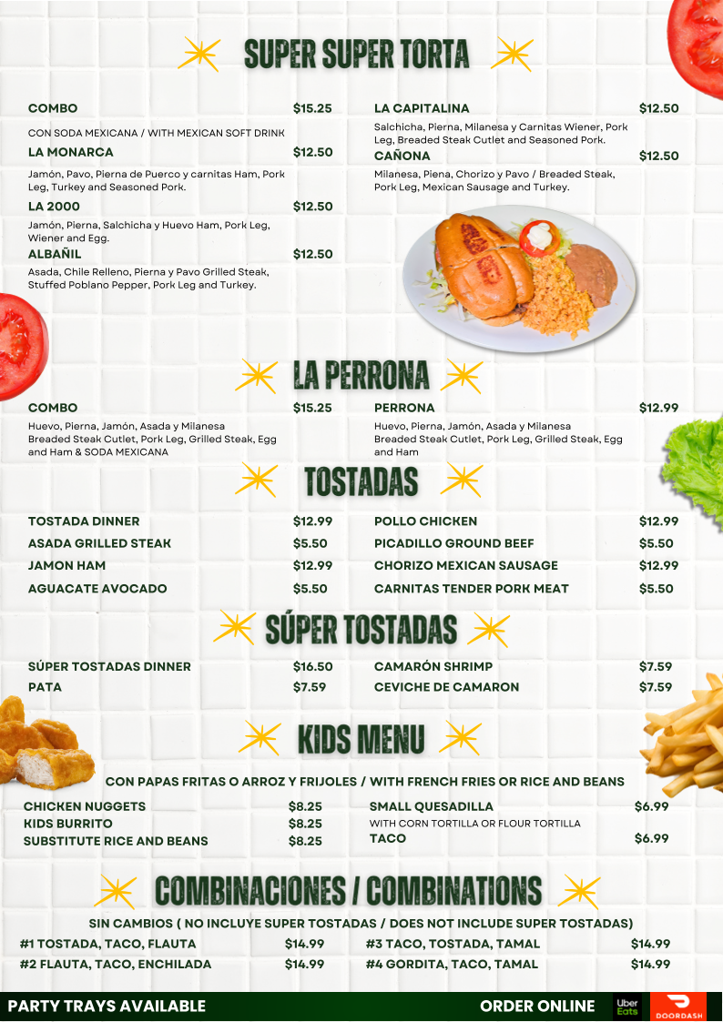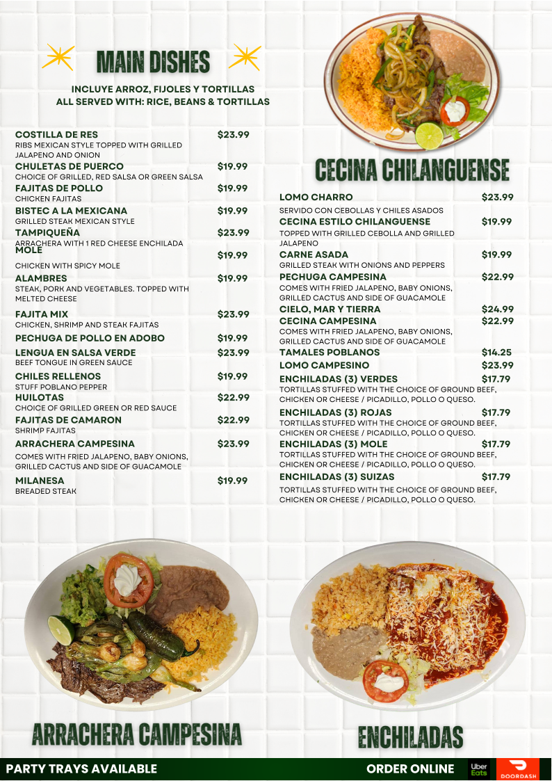 If you're looking to share or enjoy more than one flavor in a single meal, the Combinacion #1 is a fantastic pick, featuring a delightful mix of a tostada, taco, and flauta served with a side of rice and beans for only $14.99. It’s colorful, full of flavor, and invitingly filling—just as you would want from authentic Mexican cuisine!